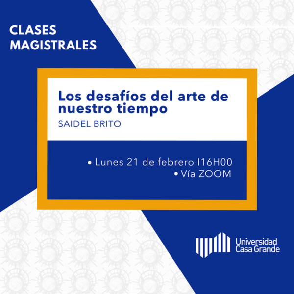La Universidad Casa Grande realiza este lunes 21 de febrero una clase magistral a cargo de Saidel Brito, quien hablará sobre el tema “Los desafíos del arte de nuestro tiempo”.