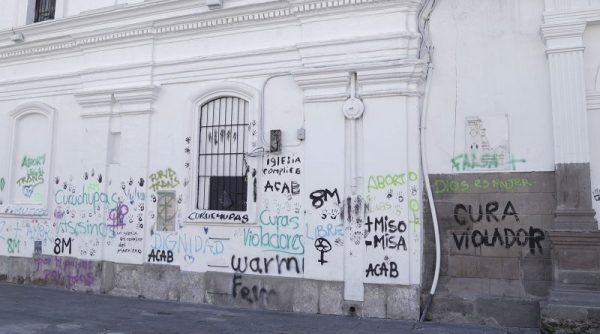 Acabamos de ser testigos de una manifestación por el día de la mujer y del vandalismo. Pues ellas pintarrajearon las paredes de la ciudad otra vez. Qué horror, siempre se pegan contra la ciudad, so pretexto de la libertad de expresión, ellas arremetieron sin medida y dejaron una huella de su diversidad en las paredes de Quito. NO puede ser, ¿hasta cuándo?