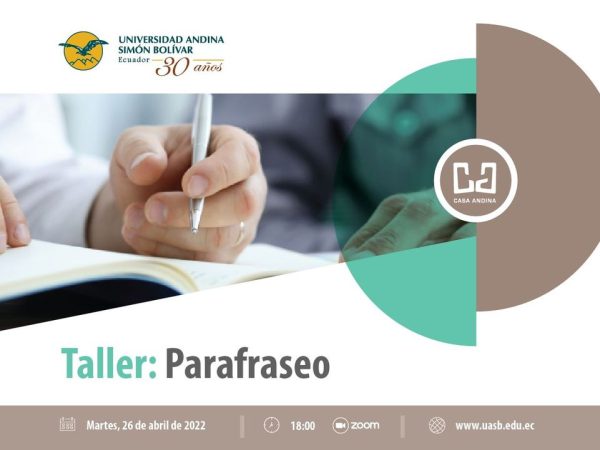 El martes 26 de abril, la Universidad Andina Simón Bolívar a las 18:00 horas realizará un taller sobre parafraseo. Este está dirigido a estudiantes, docentes, investigadores y funcionarios de la http://@uasbecuador.
