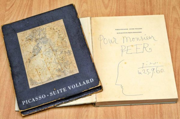 Yo hice el afiche promocional, con mi libre interpretación, de un diseño de Picasso[iii], quien luego se reunió con nosotros al sur de Francia y quedó fascinado (tanto con nuestra escenificación de su obra como con mi cartel), y me escribió una dedicatoria en un libro de grabados suyos (Suit vollard). Fue un encuentro emocionante. Con sus grandes ojos mirándome, me sentí único… el único en el mundo al que Pablo Picasso atendía en ese instante. Años después, la forma como él escribió mi nombre la convertí en mi marca comercial para una línea de t-shirts.