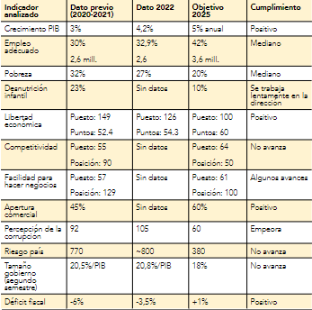 Sin embargo, para otros indicadores como desnutrición, libertad económica, competitividad o corrupción, aún no hay cifras anuales que puedan reflejar la acción de este gobierno, por lo tanto, los hemos de medir en función de los datos disponibles y una valoración personal de si el gobierno ha realizado avances. En cuanto al índice “Hacer negocios”, ya no lo elabora el Banco Mundial, luego del escándalo surgido con las cifras manipuladas de la China, por tanto también hemos de hacer tan sólo una valoración general de si se han registrado avances.