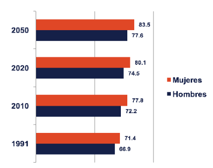 • Incremento progresivo de la esperanza de vida y mejora de la calidad de vida, debido a los avances de la ciencia (ver Gráfico No. 2). Cuando un afiliado llega a los 60 años, se espera viva en pro-medio hasta los 85 años, es decir que tendrá entre 20 y 25 años de jubilación.