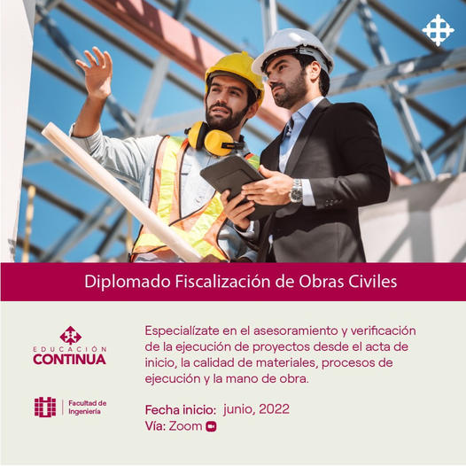 El Departamento de Educación Continua de la Universidad Católica de Santiago de Guayaquil te invita a inscribirte en el diplomado de fiscalización de obras civiles.