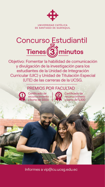 Este concurso está dirigido a estudiantes que están cursando: la Unidad de Titulación Especial (UTE) o la Unidad de Integración Curricular (UIC). La participación en este concurso es libre y voluntaria y no es vinculante con el proceso de titulación de la carrera.