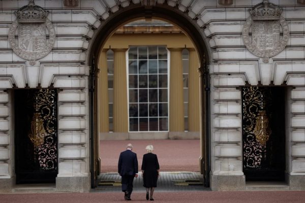 Luego caminó hacia el palacio, donde -junto a su esposa Camila- se quedó observando los miles de ramos de flores que dejaron las personas desde que se conoció la noticia del fallecimiento de Isabel II.