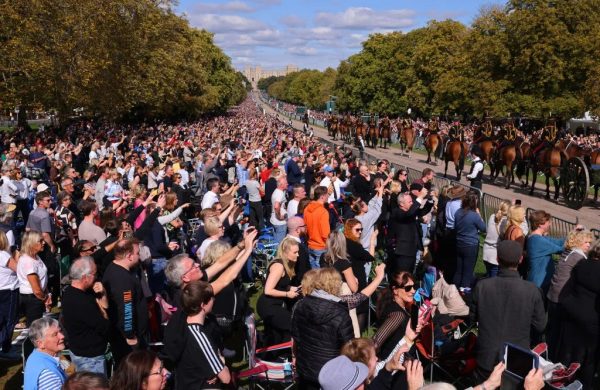 The Long Walk, la avenida que va desde el Castillo de Windsor hasta el Gran Parque de Windsor, ya llenó su capacidad de espectadores para despedir a la reina Isabel, según informó un sistema de anuncios públicos a los visitantes.