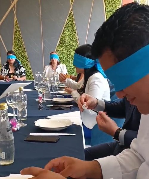 La actividad se realizó en a propósito del día mundial del turismo y fue una experiencia que se hizo con los ojos tapados para disfrutar y explorar la comida con los demás sentidos. En la actividad los presentes reconocieron los distintos sabores a través del tacto, el olfato y la lengua.