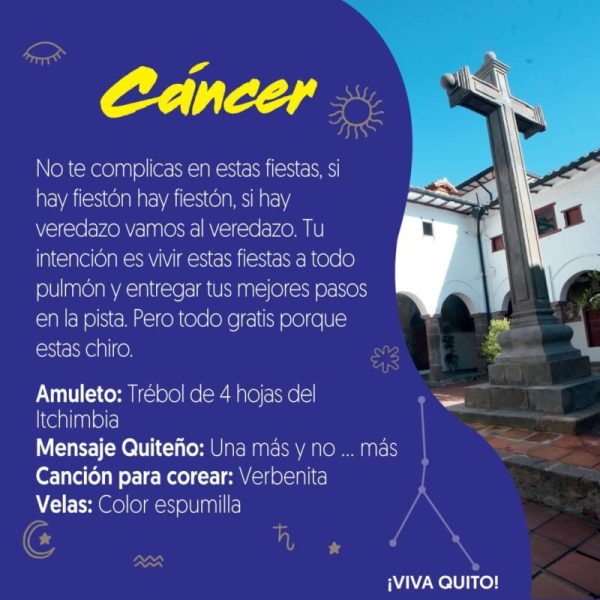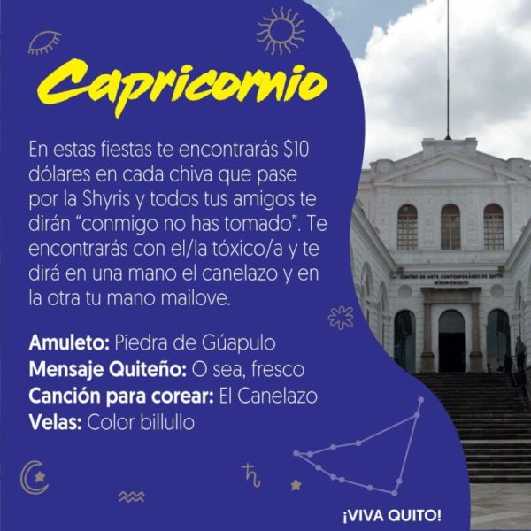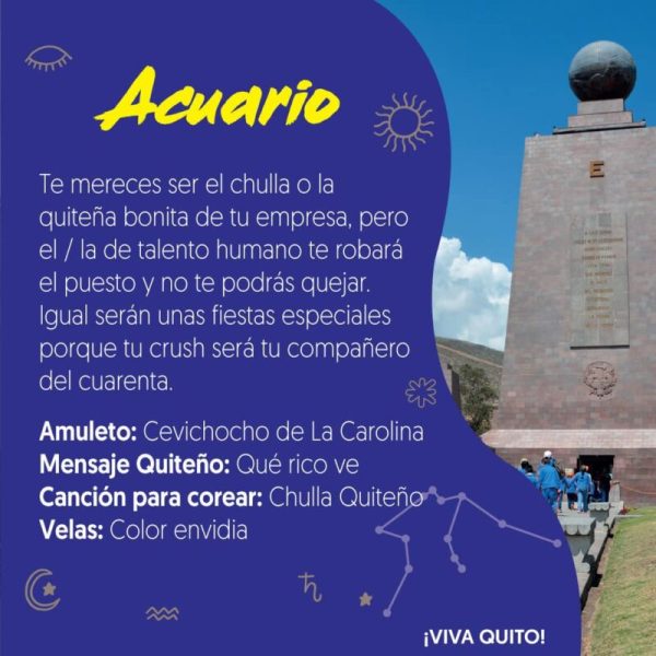 Por las fiestas de Quito, el Ministerio de Turismo ha presentado un creativo horóscopo con recomendaciones de amuletos, canciones para corear y el mensaje quiteño.