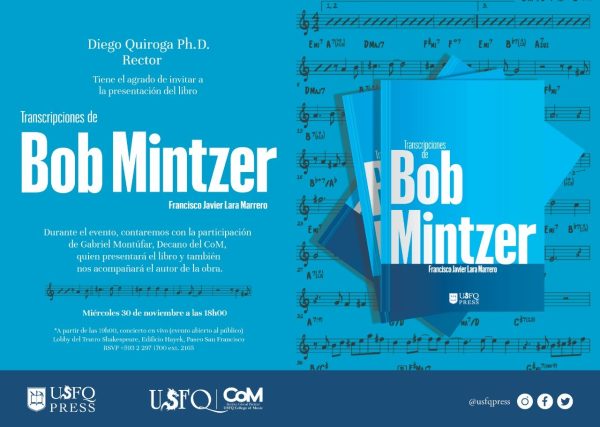 La casa editorial de la Universidad San Francisco de Quito USFQ, USFQ PRESS presenta el miércoles 30 de noviembre una nueva obra titulada Transcripciones de Bob Mintzer, de Francisco Lara Marrero. Este libro de transcripciones fue hecho con el propósito de aprender, absorber el lenguaje y el estilo de improvisación de Bob Mintzer. Además de poder observar y analizar cómo interactúan en diferentes situaciones, ideas utilizadas en su improvisación como: Secuencias melódicas, súperimposiciones armónicas, línea cliché y pedales para crear clímax en su solo y demás técnicas utilizadas.