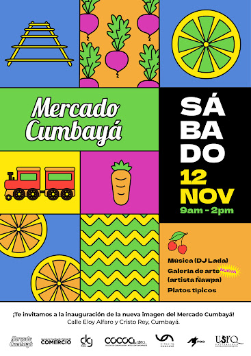 El sábado 12 de noviembre, de 9 de la mañana a 2 de la tarde, se inaugurará la nueva imagen del Mercado Cumbayá con la apertura de la galería de arte y la exhibición del artista cumbayeño Ñawpa. Habrá música y de 11 a 1 se presentará DJ LADA, nuestra graduada en la USFQ. Habrá actividades lúdicas y pintura, y se servirán platos tradicionales. ¡Asistan todos a estas actividades de vinculación con la comunidad!