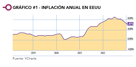 Nunca analizamos intentando adivinar el futuro, sino para diseñar el panorama de los temas importantes del entorno.Teníamos en ese momento la sensación que la inflación podía retroceder, nos preguntábamos ¿la inflación alcanzó su tope? , y así ha sido. Vemos en el gráfico #1, cómo se ha ido desacelerando, está aún en un 6,5% anual que es muy elevado pero la tendencia mensual muestra que se camina probablemente hacia un 2-3% mucho más sensato. Y en Europa hay señales de que pueda moverse hacia el 5/6%. Como casi siempre sucede, la economía tiene una mayor capacidad (de lo que se cree) micro y macroeconómica, de ajustar oferta y demanda. Algunos incluso plantean la posibilidad de que vamos hacia una deflación (inflación negativa), pero eso parece bastante menos probable, en particular porque la China se está abriendo nuevamente, y eso va a generar más crecimiento y alguna presión sobre precios (a no ser que entremos en nuevos encierros de pandemia).