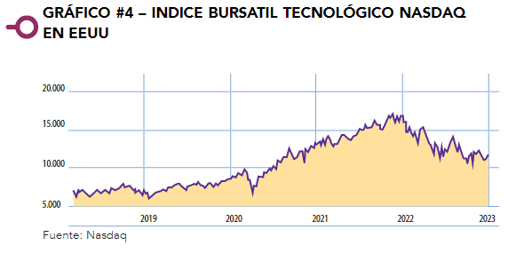 NOTA. Y a esto hay que agregar las dudas sobre el mercado bursátil. Tuvo una caída importante en el 2022, entre el 20% y el 30% según los sectores (ver gráfico #4) pero a nivel mundial un 50% de la gente cree en la posibilidad de un colapso de los mercados… 50% me parece una posibilidad muy elevada, más probable parece una estabilización del mercado con crecimiento.