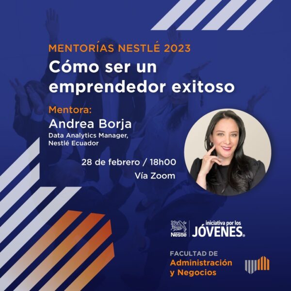 La Facultad de Administración y Negocios continua en conjunto con Nestlé el ciclo de Mentorías Nestlé 2023. Esta vez el tema a tratar el martes 28 de febrero vía Zoom es: Cómo ser un emprendedor exitoso