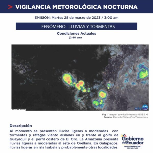 Durante la mañana de este 28 de marzo de 2023 la lluvia y tormentas continuarán afectando a Guayaquil y todas las localidades ubicadas frente al Golfo de Guayaquil.