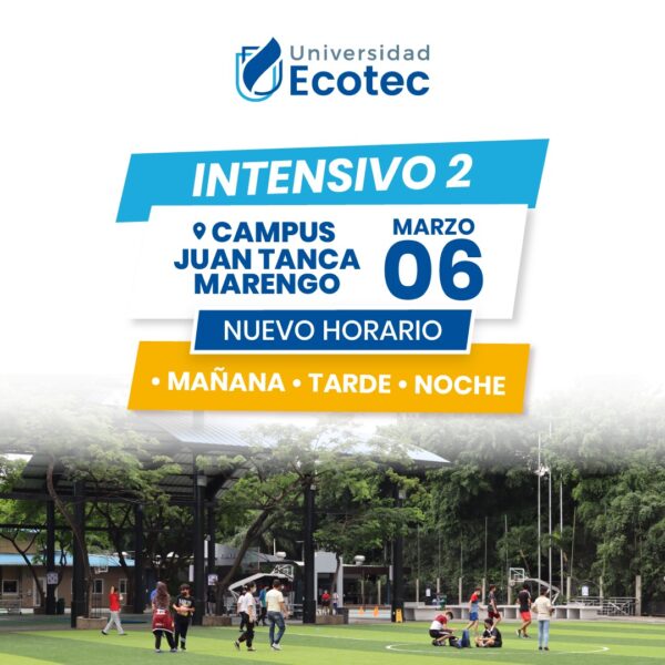 Iniciamos el Intensivo II el 06 de marzo en la U. Ecotec. Abrimos este nuevo Intensivo II en nuestro campus #JuanTancaMarengo con nuevos horarios en la mañana, tarde y noche. Esta nueva franja horaria beneficia a nuestros estudiantes, para que puedan tomar sus materias en cualquiera de nuestros 3 horarios.