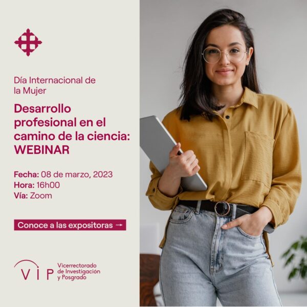 Te invitamos a ser parte de nuestro webinar “Desarrollo profesional en el camino de la ciencia”, propuesto bajo el marco del Día Internacional de la Mujer. Con el objetivo principal de potenciar las habilidades y capacidades profesionales en el ámbito de la ciencia.