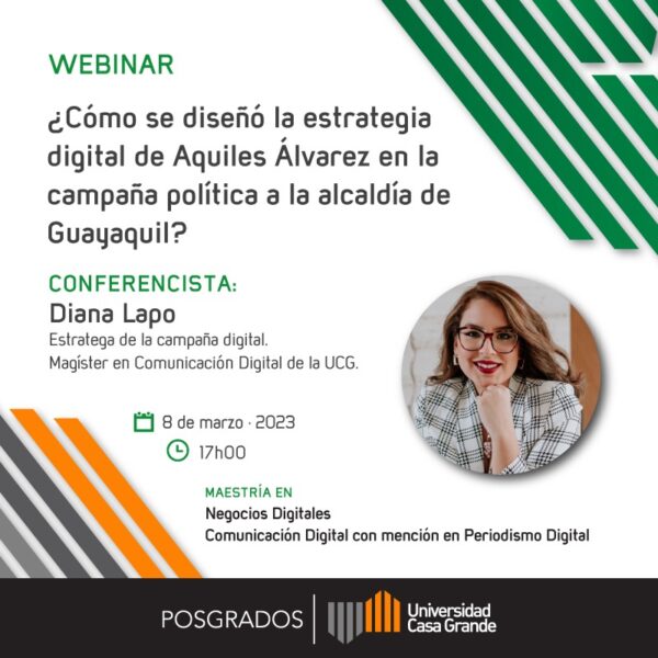 La Facultad de Posgrado y las Maestrías en Negocios Digitales y Comunicación Digital con mención en Periodismo Digital los invitan al webinar: “¿Cómo se diseñó la estrategia digital de Aquiles Álvarez en la campaña política a la alcaldía de Guayaquil?”