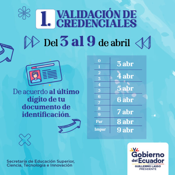 La Secretaría de Educación Superior, Ciencia, Tecnología e Innovación (Senescyt) habilitó este 3 de abril de 2023 cuatro pasos necesarios para que los aspirantes a un cupo puedan continuar en el proceso de evaluaciones de admisión para Universidades e Institutos de Educación Superior.