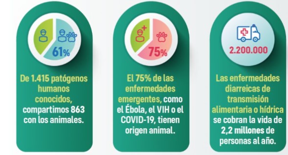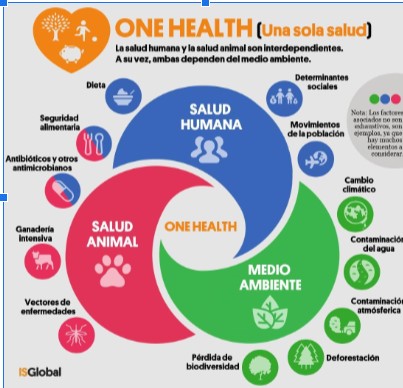 La pandemia de COVID-19, que se originó a partir de un virus de origen animal, ha resaltado la importancia del concepto ́One Health ́ en la comprensión y gestión de los riesgos para la salud global. Este enfoque se utiliza a menudo para coordinar los esfuerzos de múltiples sectores en la prevención, preparación y respuesta a enfermedades zoonóticas prioritarias, como la rabia, la gripe aviar y las fiebres hemorrágicas virales, incluyendo el ébola (Decaro et al., 2020).
