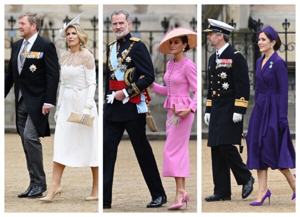 La gran duquesa de Luxemburgo llegó a la abadía luciendo un vestido largo en azul klein; en azul añil acudió, junto a su padre el rey Gustavo, la princesa y heredera al trono de Suecia Victoria, mientras que Mary de Dinamarca eligió un morado intenso.