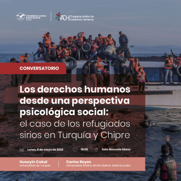 El Área de Derecho y el Programa Andino de Derechos Humanos de la Universidad Andina Simón Bolívar, Sede Ecuador invitan al conversatorio “Los derechos humanos desde una perspectiva psicológica social: el caso de los refugiados sirios en Turquía y Chipre”.