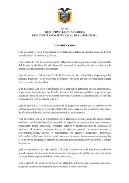 El documento de 13 páginas incluye las medidas para reducir los impuestos a 460 000 familias ecuatorianas, según explicó al finalizar la cadena nacional minutos antes. Eso significará que cerca de 200 millones de dólares se dejarán de percibir.