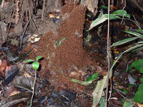 “Creo que una de las cosas más asombrosas de estas hormigas es que no tienen un nido permanente, por lo que su desarrollo de la colonia sigue un ciclo. Coordinan el momento del crecimiento y desarrollo de sus crías y la colonia se mueve de un lugar a otro dependiendo de la etapa de desarrollo de las crías. Ese tipo de desarrollo cíclico y el movimiento a través del bosque están incorporados en la forma en que funcionan sus colonias. Eso es lo que las hace realmente asombrosas y es una de las cosas que tratamos de capturar”, menciona Sean O’Donnell en una entrevista al portal de noticias de la USFQ.