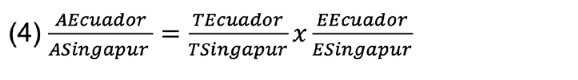 Retomamos la expresión inicial, A=T X E, y pongámosla en un formato de comparación Ecuador/Singapur: