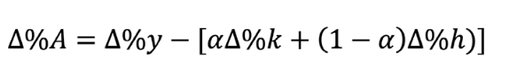 Estas tasas de crecimiento las utilizamos para calcular el llamado residuo de Solow que nos indica cuánto ha crecido la productividad:
