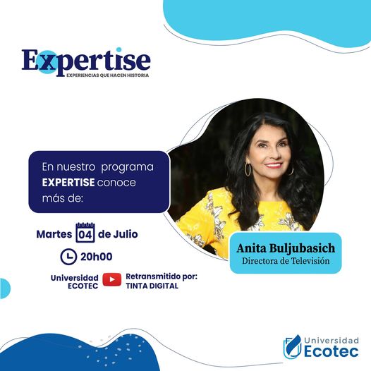 Te invitamos a ver nuestro siguiente programa #Expertise, de la Facultad de #Marketing y #Comunicación 🤩 donde conoceremos mejor a la talentosa Directora de TV Anita Buljubasich 👏, nos contará acerca de su carrera y los retos que ha afrontado en el mundo de la #Televisión 📺.