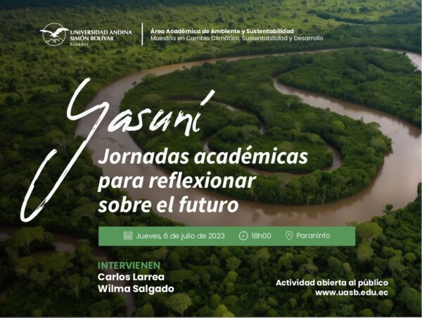 El Área de Ambiente y Sustentabilidad y la Maestría en Cambio Climático, Sustentabilidad y Desarrollo de la Universidad Andina Simón Bolívar, Sede Ecuador invitan a “Yasuní: Jornadas académicas para reflexionar sobre el futuro”.