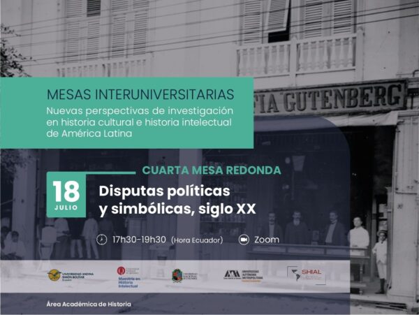 La Universidad Andina Simón Bolívar te ivnita a la cuarta mesa redonda “Disputas políticas y simbólicas, siglo XX”, que se desarrolla en el marco de las mesas interuniversitarias “Nuevas perspectivas de investigación en historia cultural e historia intelectual de América Latina”.