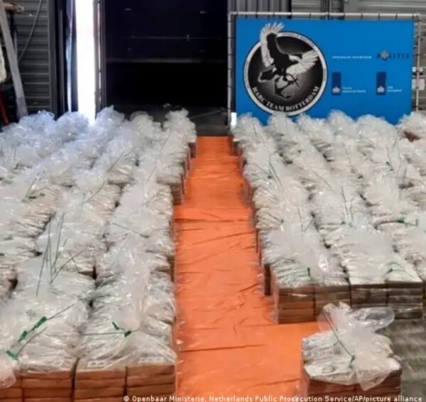 Las más de ocho toneladas de cocaína, procedentes de Ecuador, tienen un valor de unos 600 millones de euros (661 millones de dólares), según el ente. La policía neerlandesa encontró la droga en un contenedor de plátanos transportado hacia Róterdam desde Panamá.