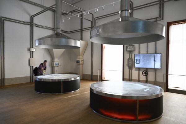 A photograph shows an inside view of the Belgian Beer World, the world’s largest interactive experience center dedicated to beer, newly opened in the renovated stock exchange building “La Bourse/De Beurs” in Brussels on September 7, 2023. (Photo by JOHN THYS / AFP)