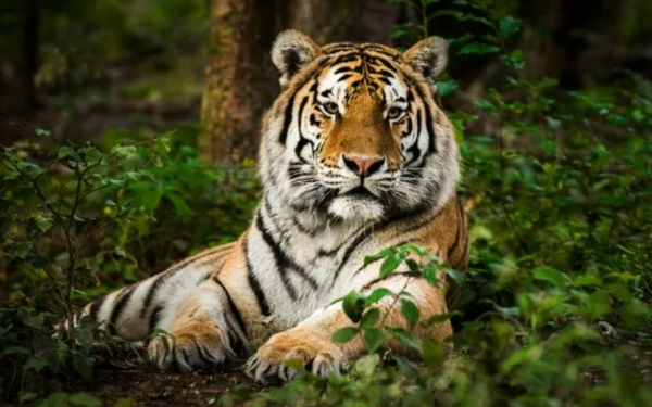 Tigre de Bengala (Panthera tigris tigris), una espectacular representación de la belleza en el poder. Con sus atrevidas rayas negras que contrastan con un fondo de pelaje naranja y blanco, este gran felino es uno de los animales más bonitos del mundo. Y su pelaje no es sólo para lucirse; proporciona un excelente camuflaje, lo que les permite mezclarse con su entorno mientras acechan a sus presas.