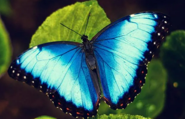 Mariposa morpho, originaria de las selvas tropicales de América Central y del Sur, es famosa por sus brillantes alas de color azul metálico. Este tono no se debe al pigmento sino a la forma en que la luz interactúa con las estructuras microscópicas en las escamas de sus alas. Este fenómeno, conocido como coloración estructural, da como resultado un efecto iridiscente que cambia según el ángulo de visión.