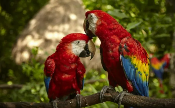 Guacamayo escarlata (Ara macao), una especie de ave de apenas un kilogramo de peso que resalta por sus plumas repletas de los tonos del arco iris. Se encuentra en las selvas tropicales de América Central y del Sur y más allá de la belleza, estas plumas tienen ventajas funcionales, como ayudar en el vuelo y en la comunicación.
