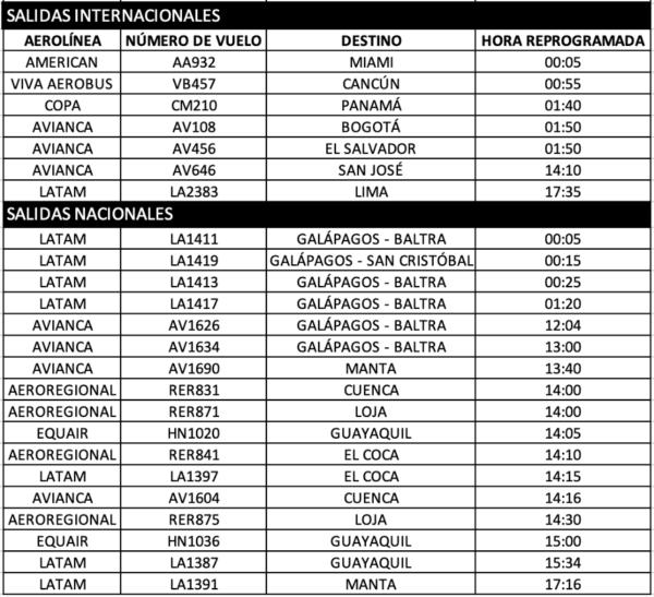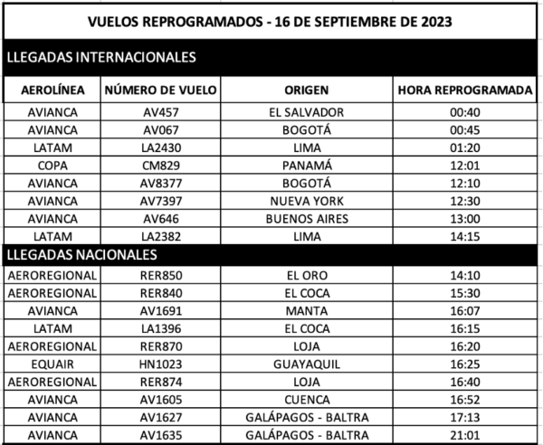De acuerdo con la información publicada el 16 de junio de 2023, las operaciones aéreas en el Aeropuerto Mariscal Sucre se suspenderán los sábados 2 y 9 de septiembre de 02:00 – 14:00 mientras que los sábados 16, 23 y 30 de septiembre, y los sábados 14, 21 y 28 de octubre, a partir de las 02:00 hasta las 12:00.
