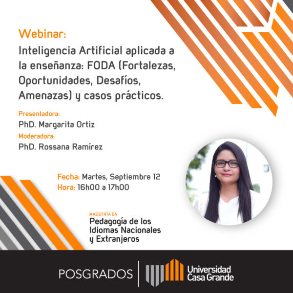 La Maestría en Pedagogía de los Idiomas Nacionales y Extranjeros los invitan al webinar: Inteligencia Artificial aplicada a la enseñanza: FODA (Fortaleza, Oportunidades, Desafíos, Amenazas) y Casos prácticos .