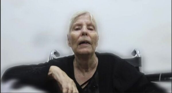 En él, se la ve sentada en una silla de ruedas mientras se dirige a la cámara. Fue secuestrada en Nir Oz, junto con su hijo, Elad Katzir (47), pero él no fue entregado.