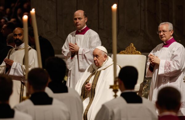 El Papa Francisco (centro) dirige la misa de Navidad de Medianoche en la solemnidad de la Natividad del Señor en la Basílica de San Pedro del Vaticano, el 24 de diciembre de 2023. (Papá) EFE/EPA/GIUSEPPE LAMI