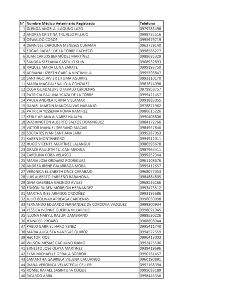 La Agencia de Regulación y Control Fito y Zoosanitario compartió una lista integrada por 82 veterinarios calificados para emitir el documento sanitario para las mascotas a escala nacional.