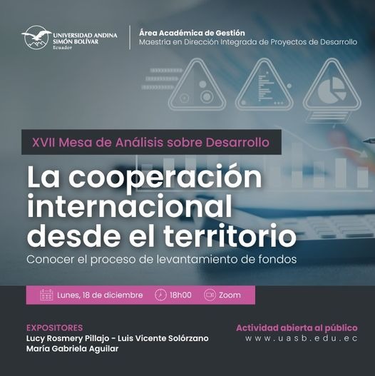 🌐 Únete a la XVII Mesa de Análisis sobre Desarrollo: “Cooperación Internacional desde el Territorio”. 🌍 🎙️ Expositores: Lucy Pillajo, Luis Solórzano, María Aguilar 👥 Moderador: Marco Polo Cevallos 📅 18 DIC ⏰18h00 🚀 Zoom 🔗 ¡Inscríbete aquí! 👉 https://mtr.cool/utintegofl