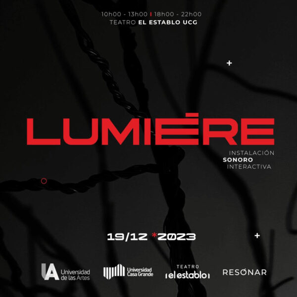 “Lumière” es una instalación sonora interactiva que combina elementos visuales y auditivos. Inspirada en formas de vida parasitarias, la obra consta de tres esculturas sonoras. Los participantes utilizan un dispositivo lumínico para interactuar, afectando la exposición de 24 sensores lumínicos. La información se procesa en tiempo real a través de Arduino, Max MSP y Ableton Live, generando sonidos efímeros y evolutivos.