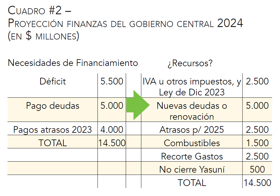 La situación para el 2024 se puede resumir en el cuadro #2. Hay esas u otras opciones.