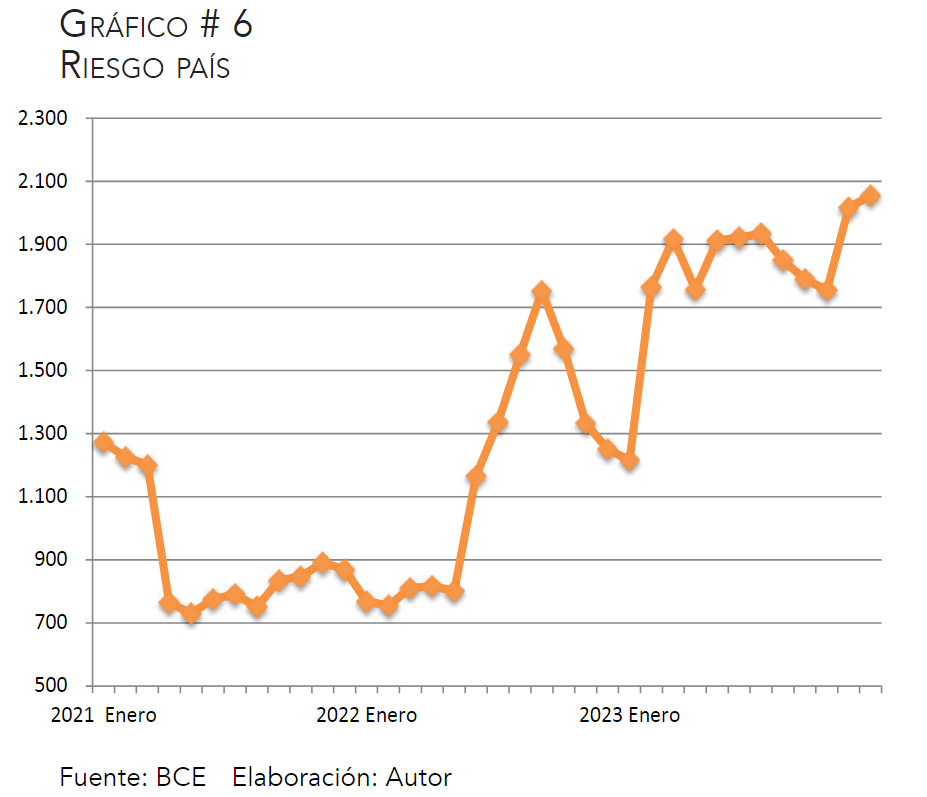 ¿A qué se debe esto? Obviamente al riesgo de que no paguemos la deuda externa ahora, o en el 2025. ¿Razones? La muy mala situación fiscal, agravada por los problemas de la seguridad social que pronto requerirán de aún más recursos (¿para cuándo una reforma?), la producción de petróleo que sigue declinando (además del golpe del cierre del Yasuní que ojalá se pueda al menos diferir), y el precio del petróleo que bajó 30 dólares entre 2022 y 2023 y algunos creen puede seguir declinando (pero los pronósticos pueden alterarse por mil razones).