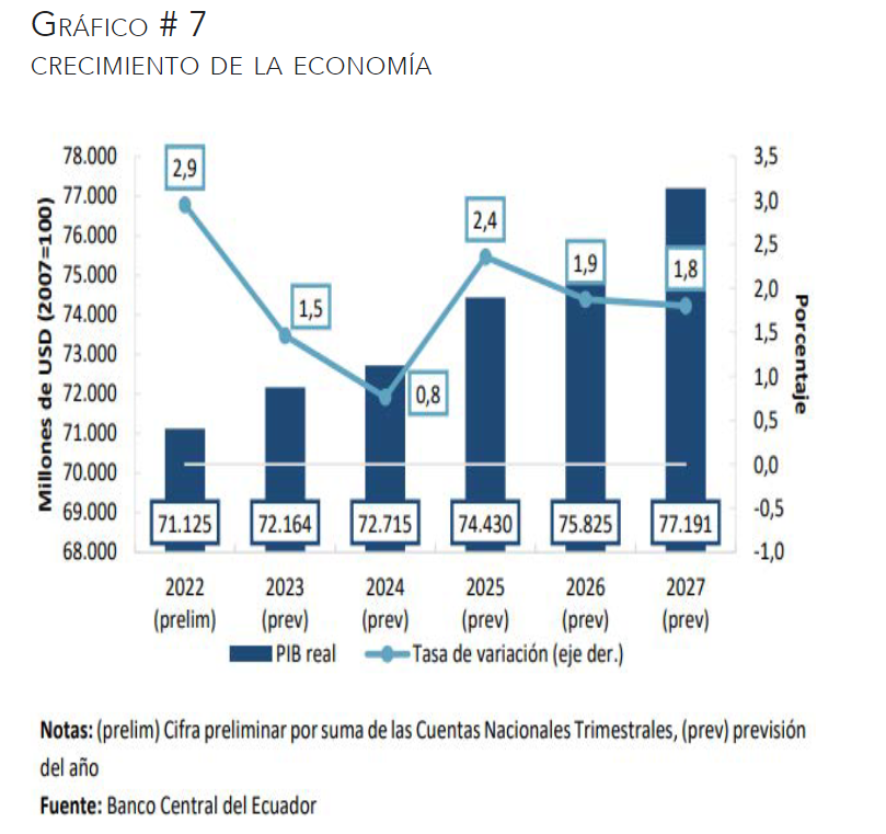 Es esencial, es la mejor “política social”, representa la manera genuina de que la gente mejore en su vida mediante más (y mejores) empleos e ingresos. Y el objetivo debería ser crecer entre el 4% y 5% de manera sostenible y sostenida. Como vemos en el gráfico #7, el Banco Central proyecta apenas entre 1% y 2%, y aunque puede estar equivocado (ojalá), estamos lejos del objetivo.