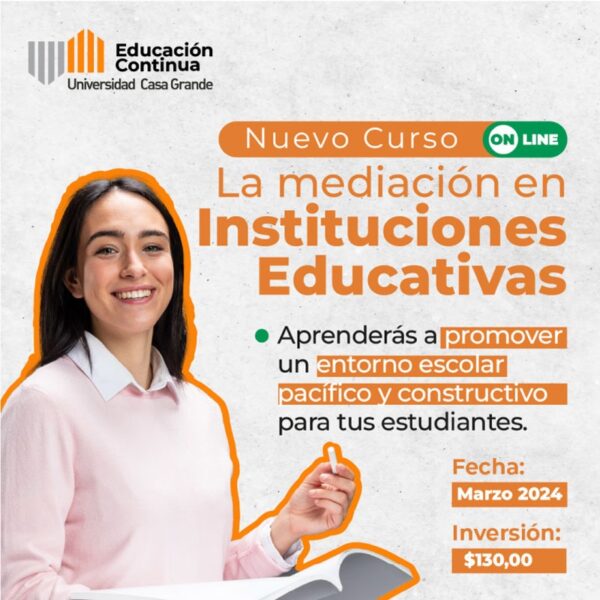 Curso La Mediación en Instituciones Educativas: Promover un entorno escolar pacífico y constructivo, donde se fomenten la resolución no violenta de conflictos y la empatía entre los estudiantes.