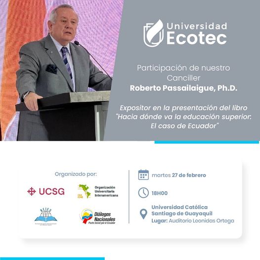 Nuestro Canciller Roberto Passailaigue, Ph.D., participará como expositor en la presentación del libro “A dónde va la educación superior. El caso de Ecuador”.