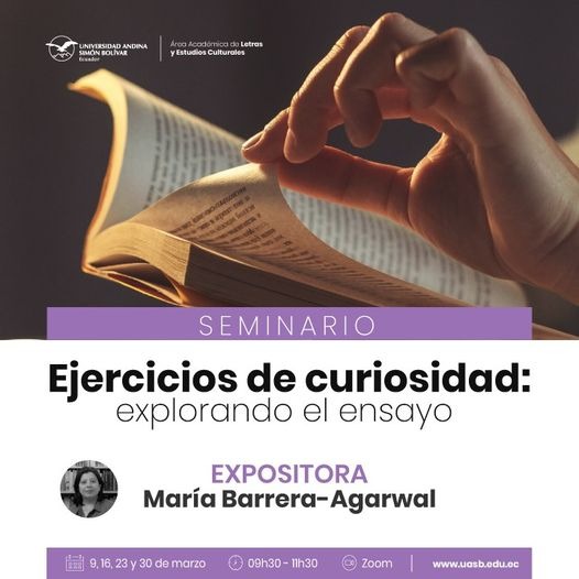 ✨📚 ¡Amantes de la literatura, les extendemos una invitación especial al seminario “Ejercicios de curiosidad: explorando el ensayo” con la destacada María Barrera-Agarwal!
